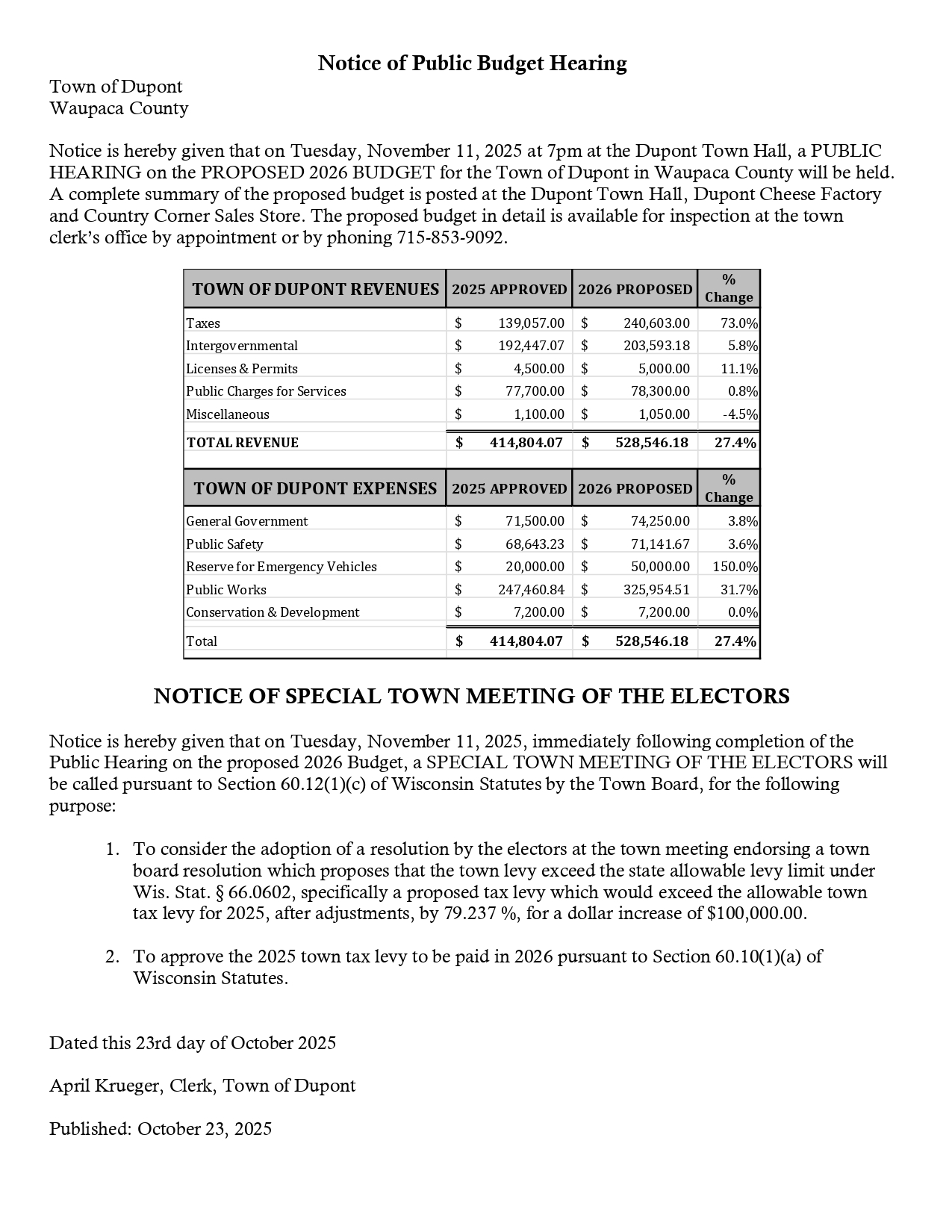 Notice of Public Budget Hearing – Notice of Special Town Meeting of the Electors Posted on October 23, 2025 at 4:01 pm.Written by Flor Faustino Notice of Public Budget Hearing – 10.23.2025